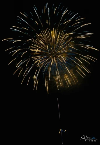 Golden and Blue Firework Bursts in Night Sky
