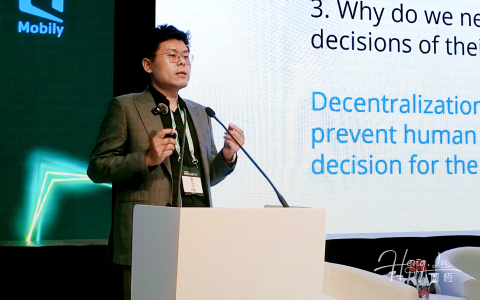 Lu Heng talks on the topic of Internet decentralization at the Capacity Middle East conference in Dubai, February 2024.